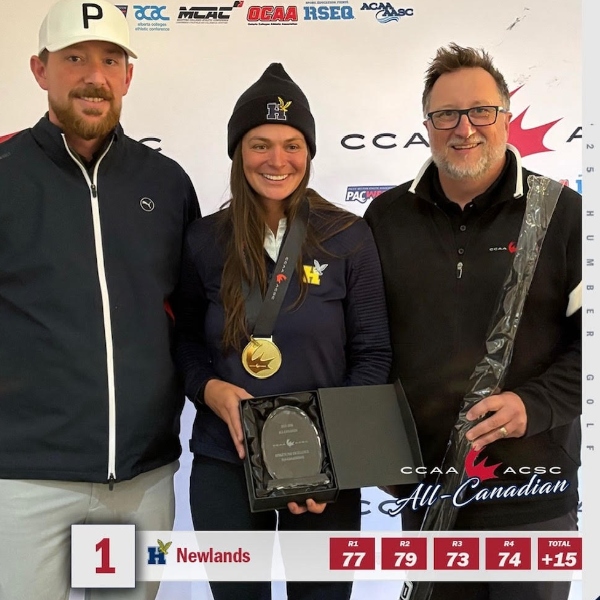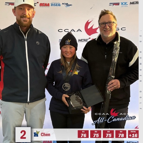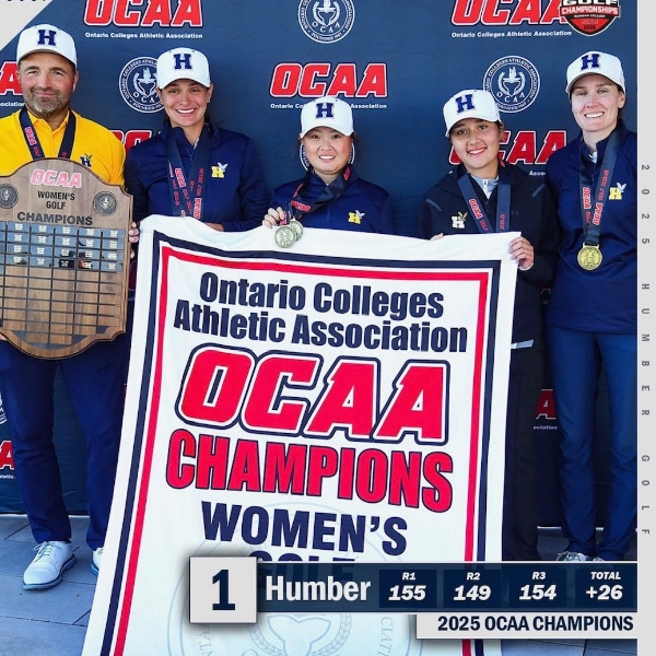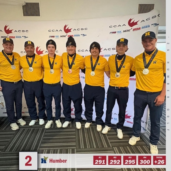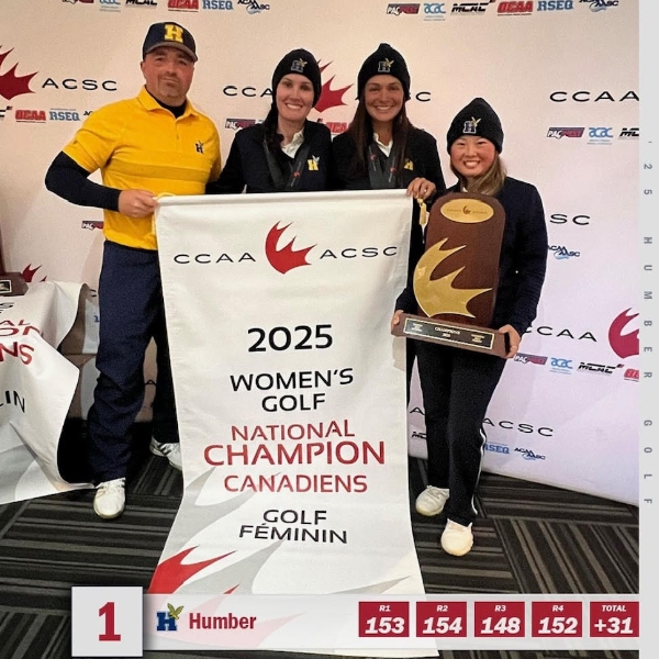 At the 2025 CCAA National Championship held at Desert Blume Golf Course in Alberta, Jordon Newlands secured the gold medal, while Susan Chen secured silver in the Canadian women’s individual competition. The women’s team went on to win overall gold, and the men’s team earned silver in a closely contested finish. In addition, five Humber athletes were named CCAA All-Canadians, recognizing outstanding performance throughout the season.