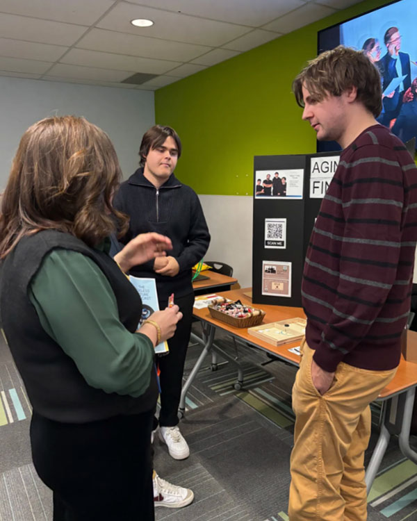 After the first initial podcast episodes were posted online, the only thing left to do was to prepare for the big showcase event the next week! Which is exactly what the class period the week before the event was. There had to be time to create the poster boards, think of the booth layout, plan what to wear, how to make the presentations interactive, and many other things. This leads into the big showcase launch event day…which is covered in detail in another article! 11 groups each with their own small booth trying to gather the attention of passerby guests. It was a fun and enjoyable experience.