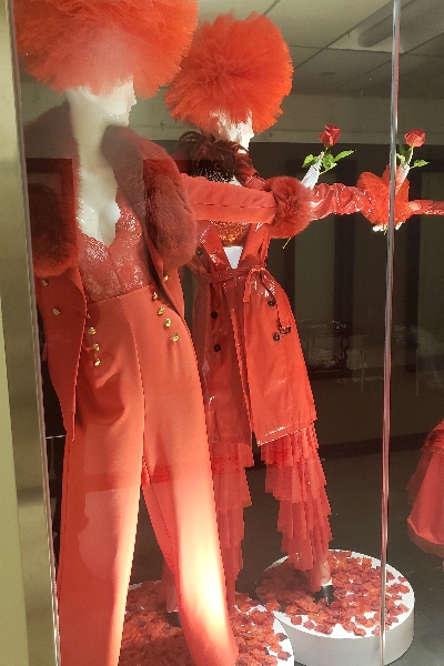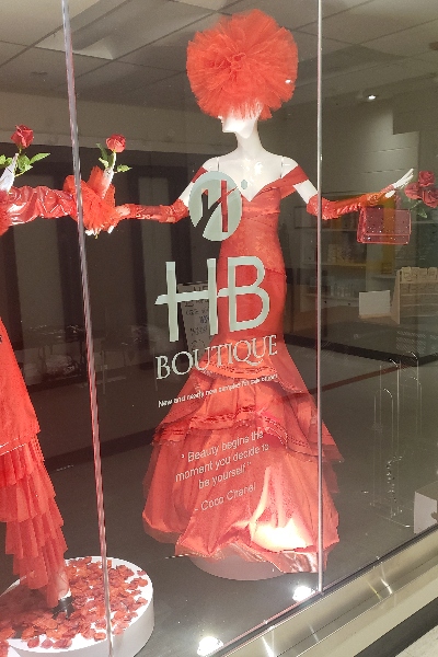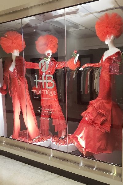 Execution needed careful consideration of styling, as well as proportion. We made ongoing adjustments to the composition, including repositioning mannequins, perfecting outfits and accessory placements across the three looks to improve balance and strengthen the focal point. The final result is a bright, dramatic window that attracts the attention of students and alumni and sets a welcoming, Valentine’s tone for the boutique.