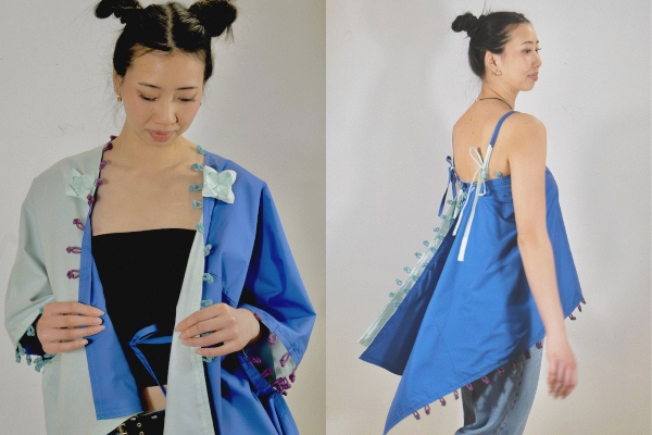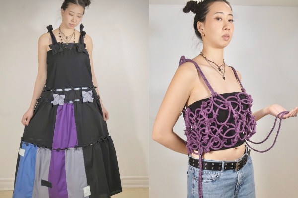 Meanwhile, Chau’s apparel collection focused on multi-functionality and versatility, demonstrating how even minimalist materials can be reimagined into meaningful, adaptable garments. Designed exclusively with Ontario-sourced fabrics, her collection illustrated how local sourcing and value-added design can drive both ethical and practical fashion innovation.