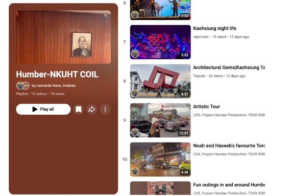 Throughout the fall semester, students in the business degree elective TOUR3000: International and Canadian Tourism, taught by Professor Anke Föller-Carroll, collaborated with students from Humber Polytechnic’s partner institution, National Kaohsiung University of Hospitality and Tourism (NKUHT), as part of a Collaborative International Online Learning (COIL) experience. The NKUHT cohort was led by Professor Leonardo Nava Jiménez.